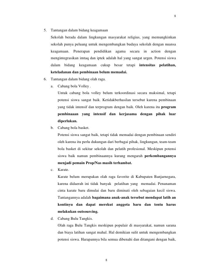 Target Kegiatan Target dari kegiatan ini adalah Siswa/siswi “.” atau pelajar lainnya dan umum. Jadwal Kegiatan Kegiatan latihan yang telah berjalan adalah dua kali dalam satu minggu yaitu pada hari Selasa dan Sabtu jam 15.30 WIB berlokasi di “” BAB III RENCANA PROGRAM KERJA 3. Rencana Program kerja Jangka Pendek dan Menengah Setelah berjalan sekian lama ekstrakurikuler karate ”.” hingga saat ini masih tetap berjalan, ini berkat adanya kerja sama antara sekolah, guru, pengurus ekstarkurikuler karate dan pelatih karate serta pihak-pihak terkait yang mendukung kegiatan ekstarkurikuler karate. Adapun rencana kegiatan jangka pendek dan menengah ini meliputi: 1. Memperkenalkan dan mempertunjukkan ekstrakurikuler karate ”.” kepada siswa/siswi ”.”. Mengajak dan merekrut siswa/siswi ”.” untuk ikut serta dalam kegiatan ekstrakurikuler bela diri karate. Mampu menunjukkan sebagai ekstrakurikuler bela diri yang di minati oleh siswa/siswi ”.”.